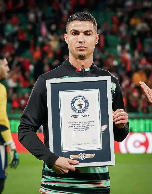 赛前,C罗获颁吉尼斯世界纪录证书。在去年11月葡萄牙5-1战胜波兰的比赛,C罗在国家队获胜132场,超越拉莫斯成为国家队胜场最多的球员。
